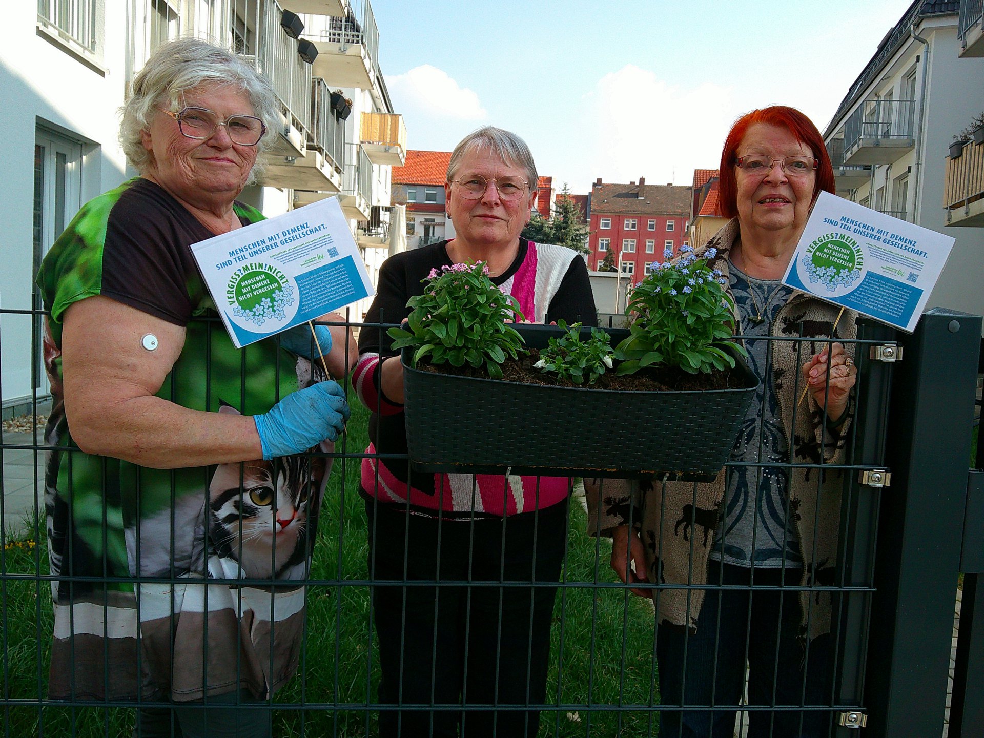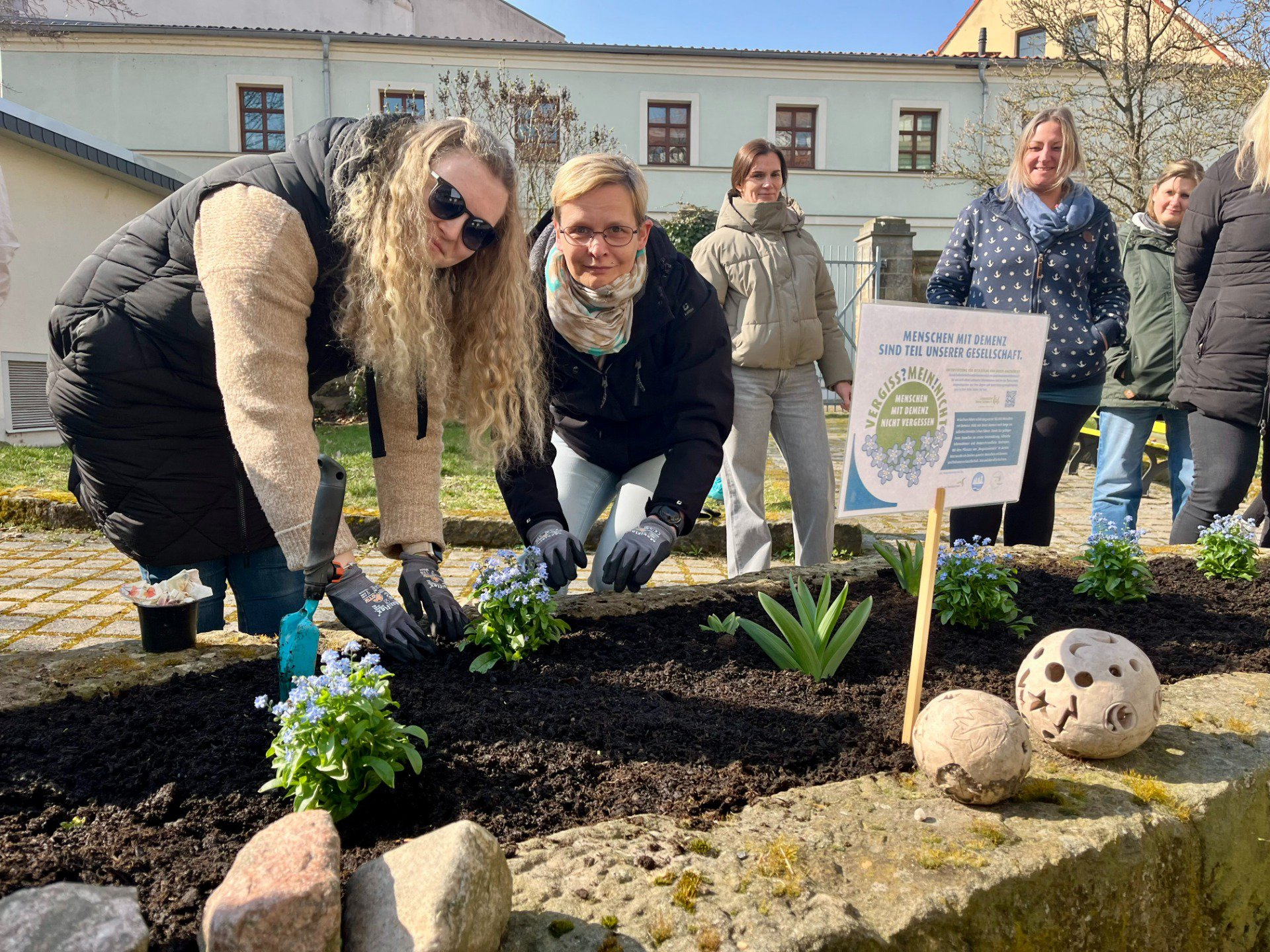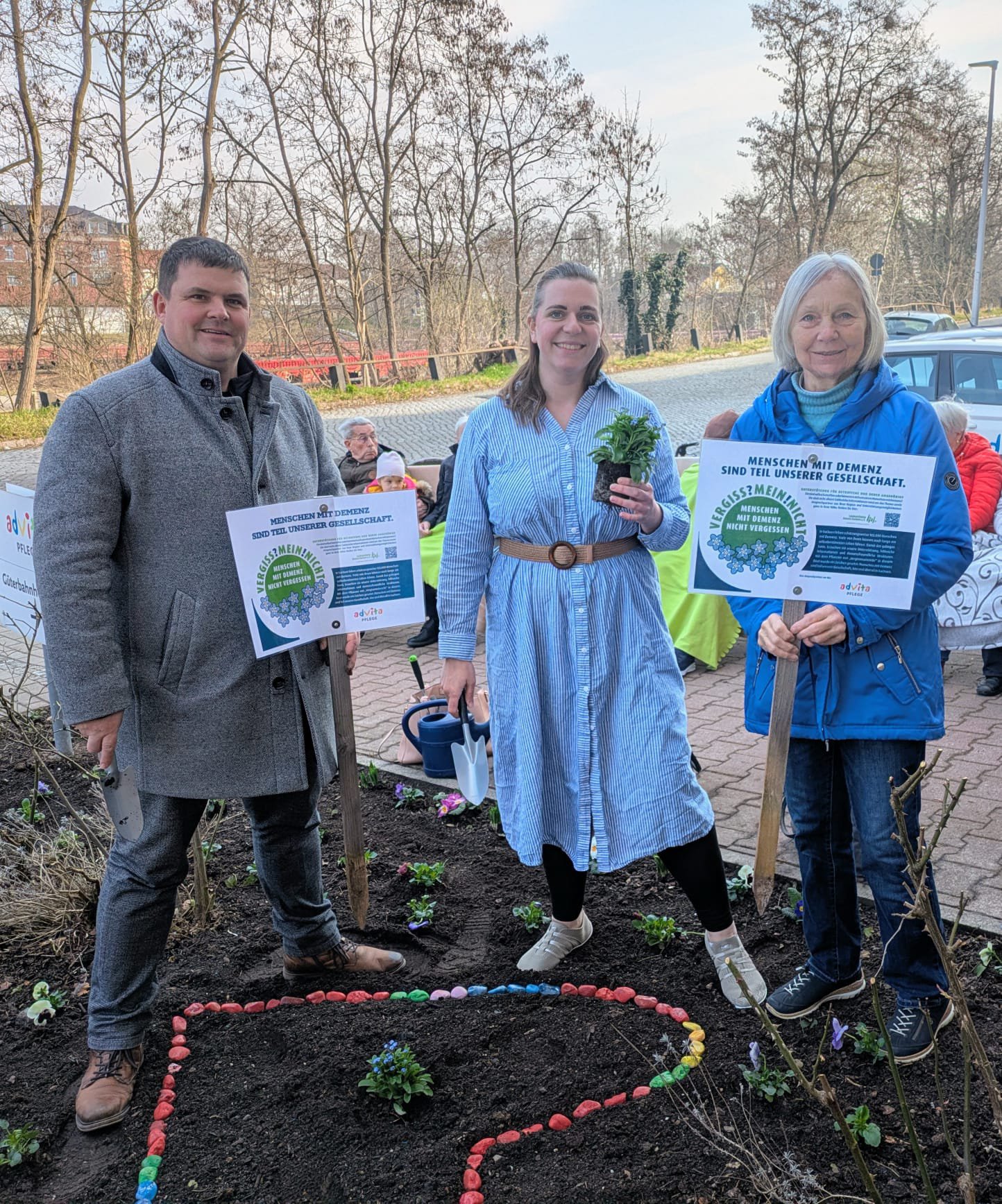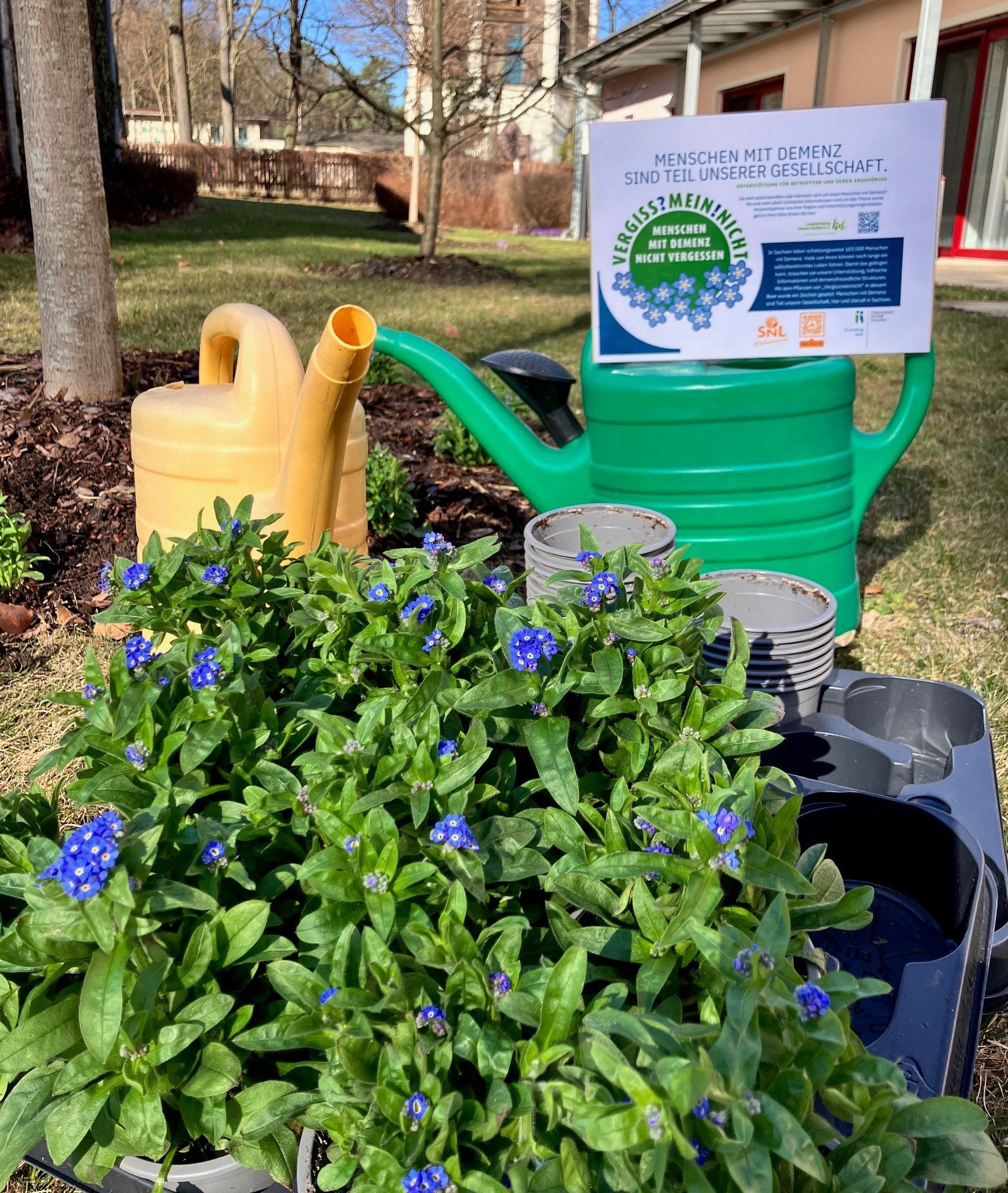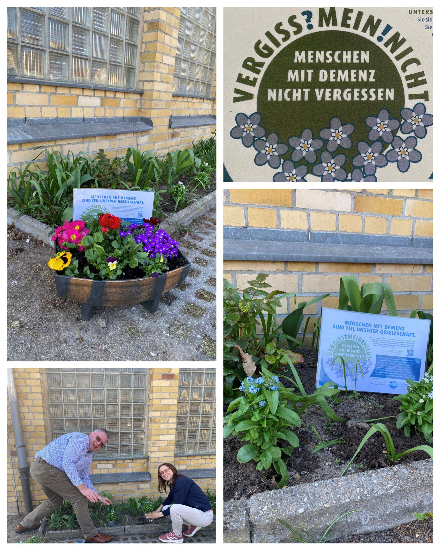 Die VERGISS?MEIN!NICHT-Aktion ist eine Gelegenheit, bei der Menschen aus unterschiedlichen Bereichen und Berufsgruppen zusammenkommen und etwas Wertvolles schaffen: Ein blühendes Beet, das vorbeieilende Passanten erfreut und wie nebenbei die Möglichkeit gibt, sich über einen QR-Code auf der Informationstafel zum Krankheitsbild, den regionalen Anlaufstellen und der Aktion zu informieren.