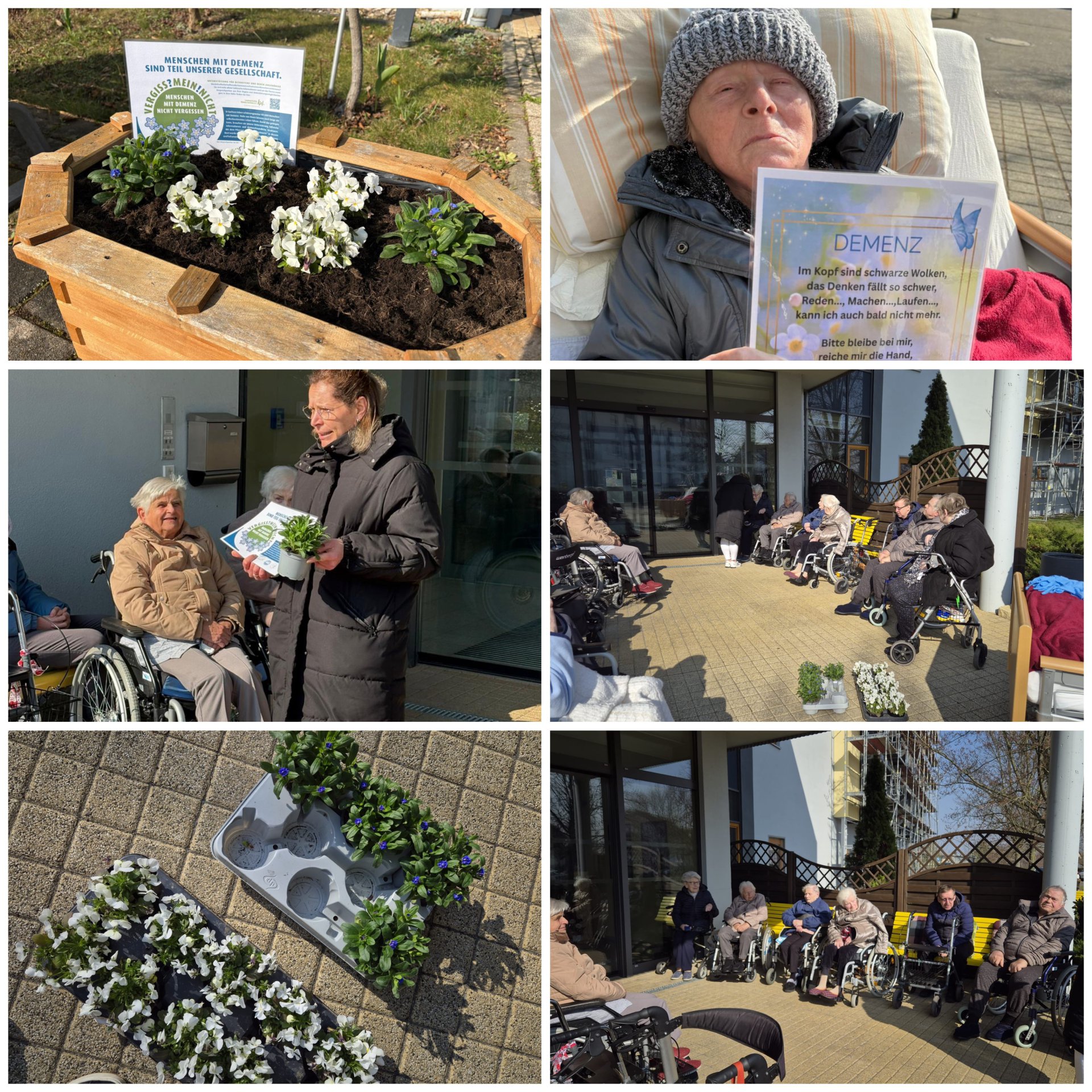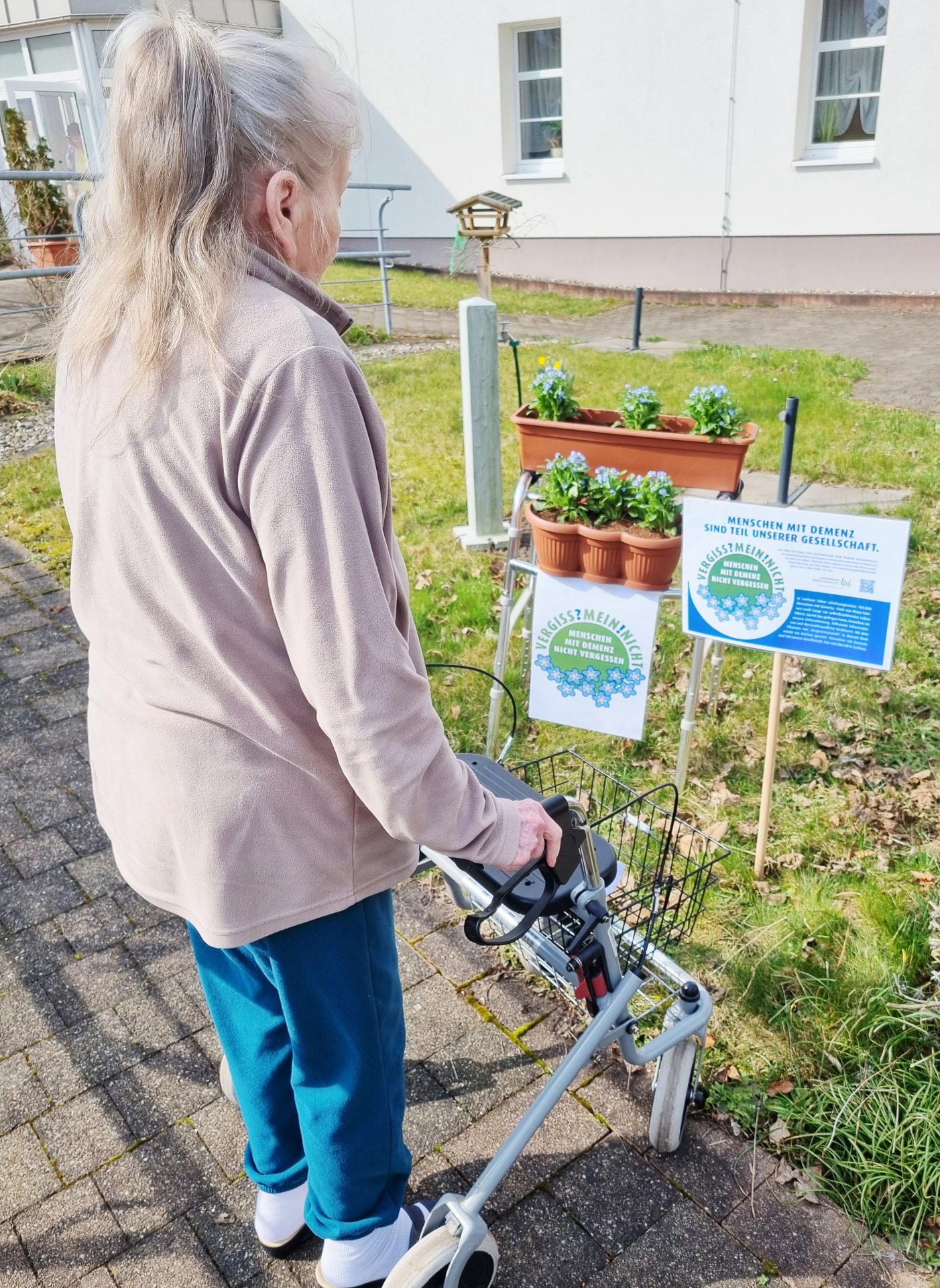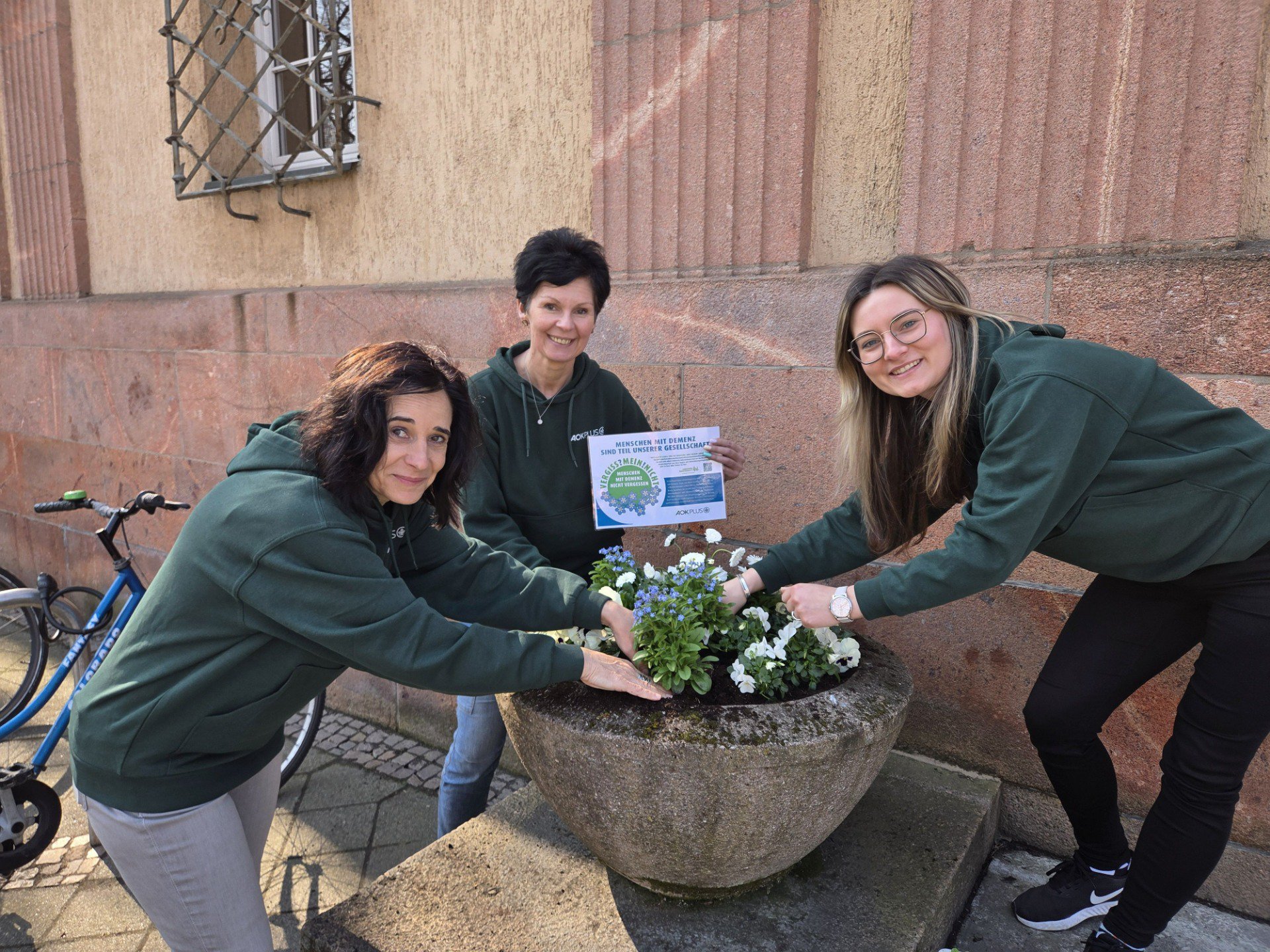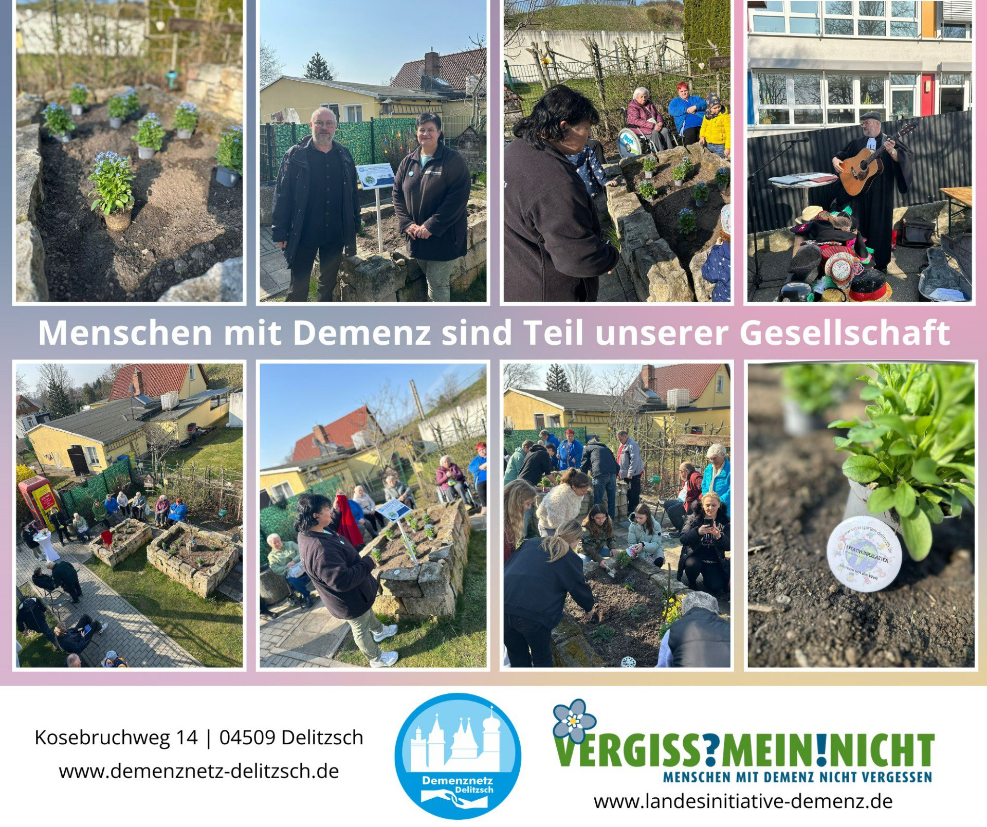 Die VERGISS?MEIN!NICHT-Aktion ist eine Gelegenheit, bei der Menschen aus unterschiedlichen Bereichen und Berufsgruppen zusammenkommen und etwas Wertvolles schaffen: Ein blühendes Beet, das vorbeieilende Passanten erfreut und wie nebenbei die Möglichkeit gibt, sich über einen QR-Code auf der Informationstafel zum Krankheitsbild, den regionalen Anlaufstellen und der Aktion zu informieren.