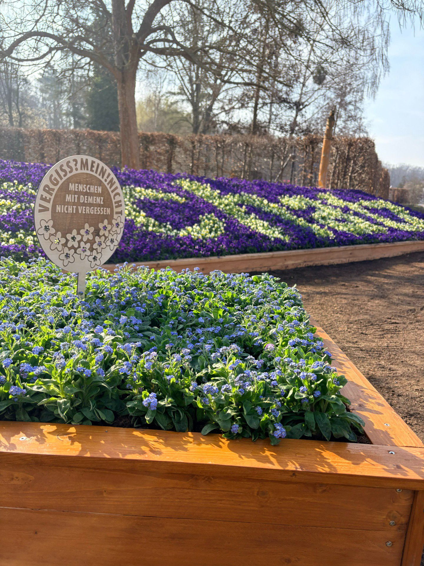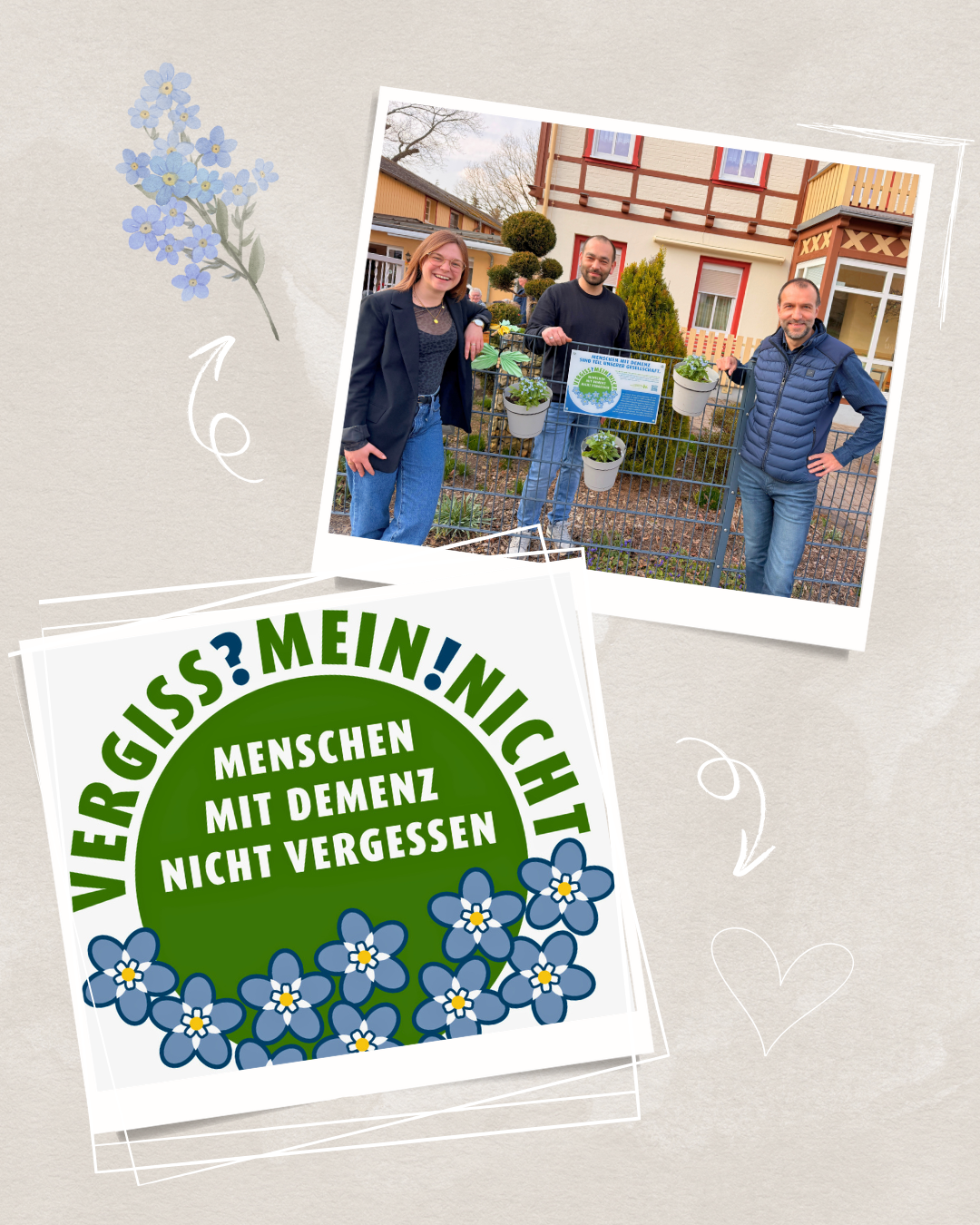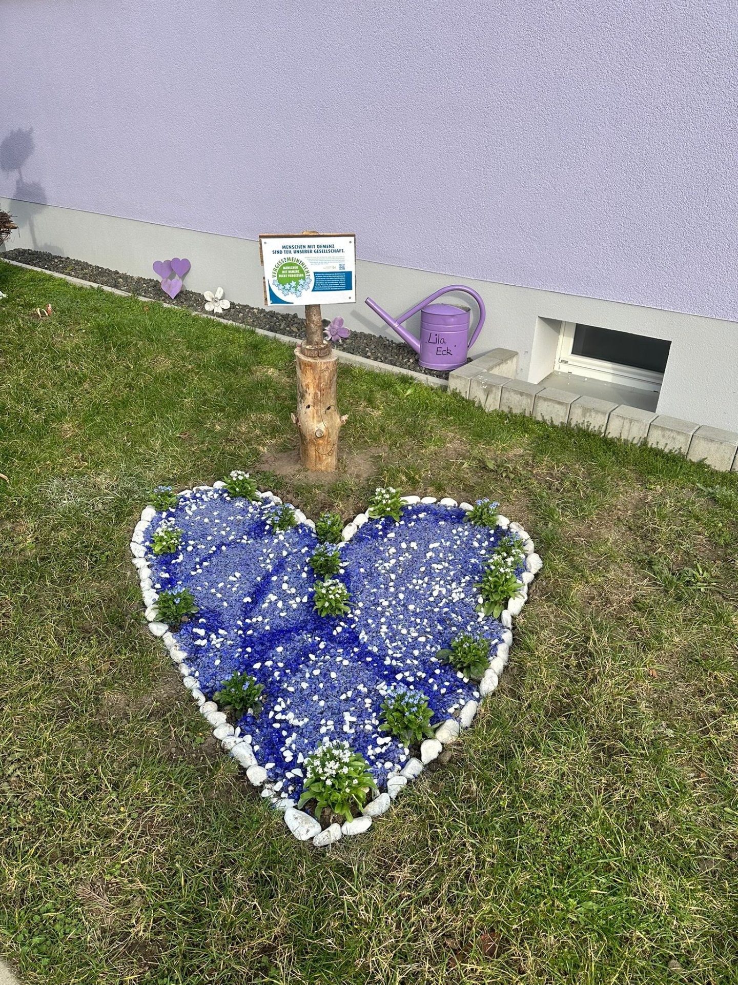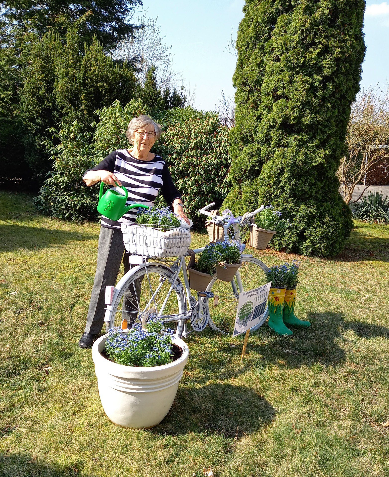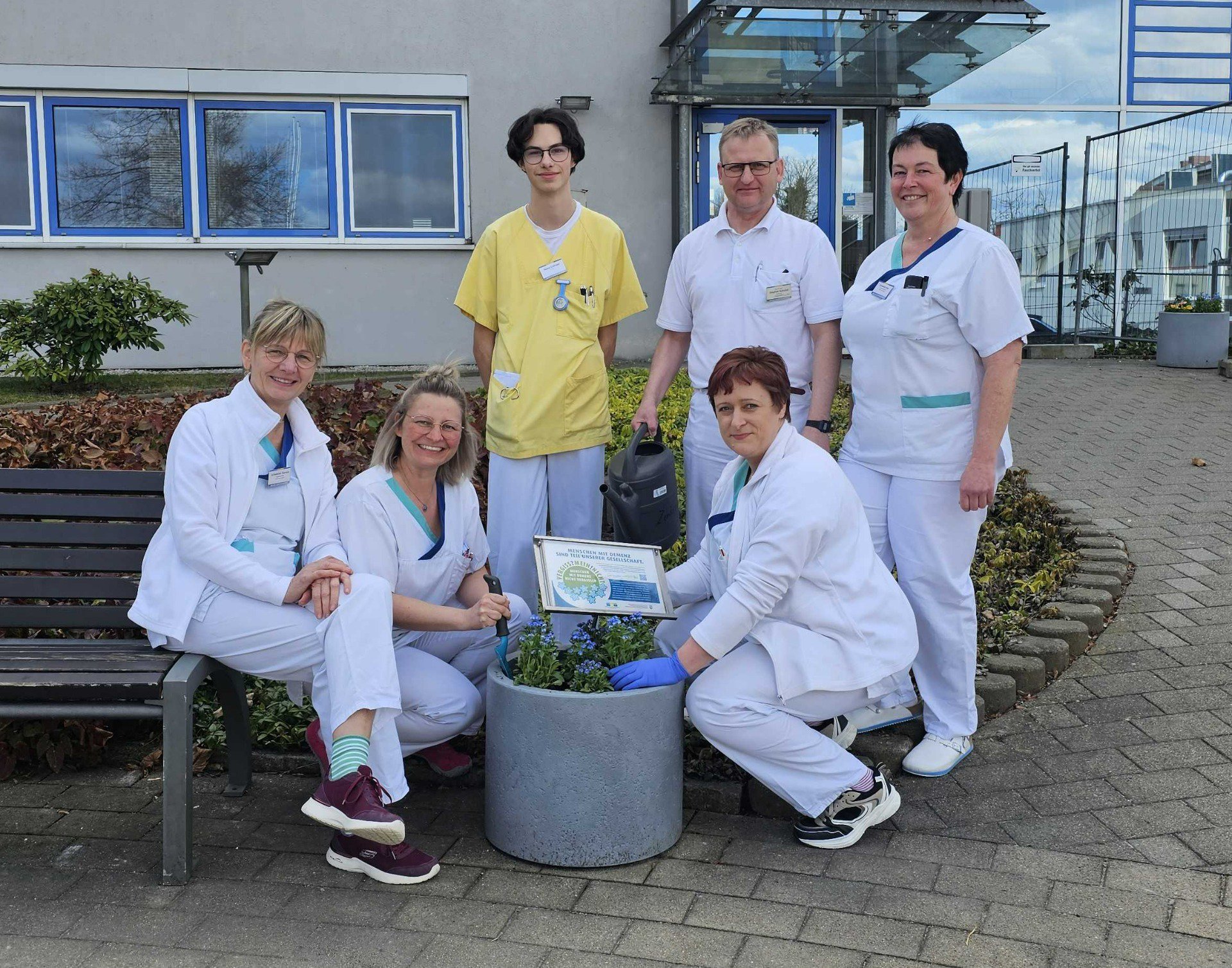 Die VERGISS?MEIN!NICHT-Aktion ist eine Gelegenheit, bei der Menschen aus unterschiedlichen Bereichen und Berufsgruppen zusammenkommen und etwas Wertvolles schaffen: Ein blühendes Beet, das vorbeieilende Passanten erfreut und wie nebenbei die Möglichkeit gibt, sich über einen QR-Code auf der Informationstafel zum Krankheitsbild, den regionalen Anlaufstellen und der Aktion zu informieren.