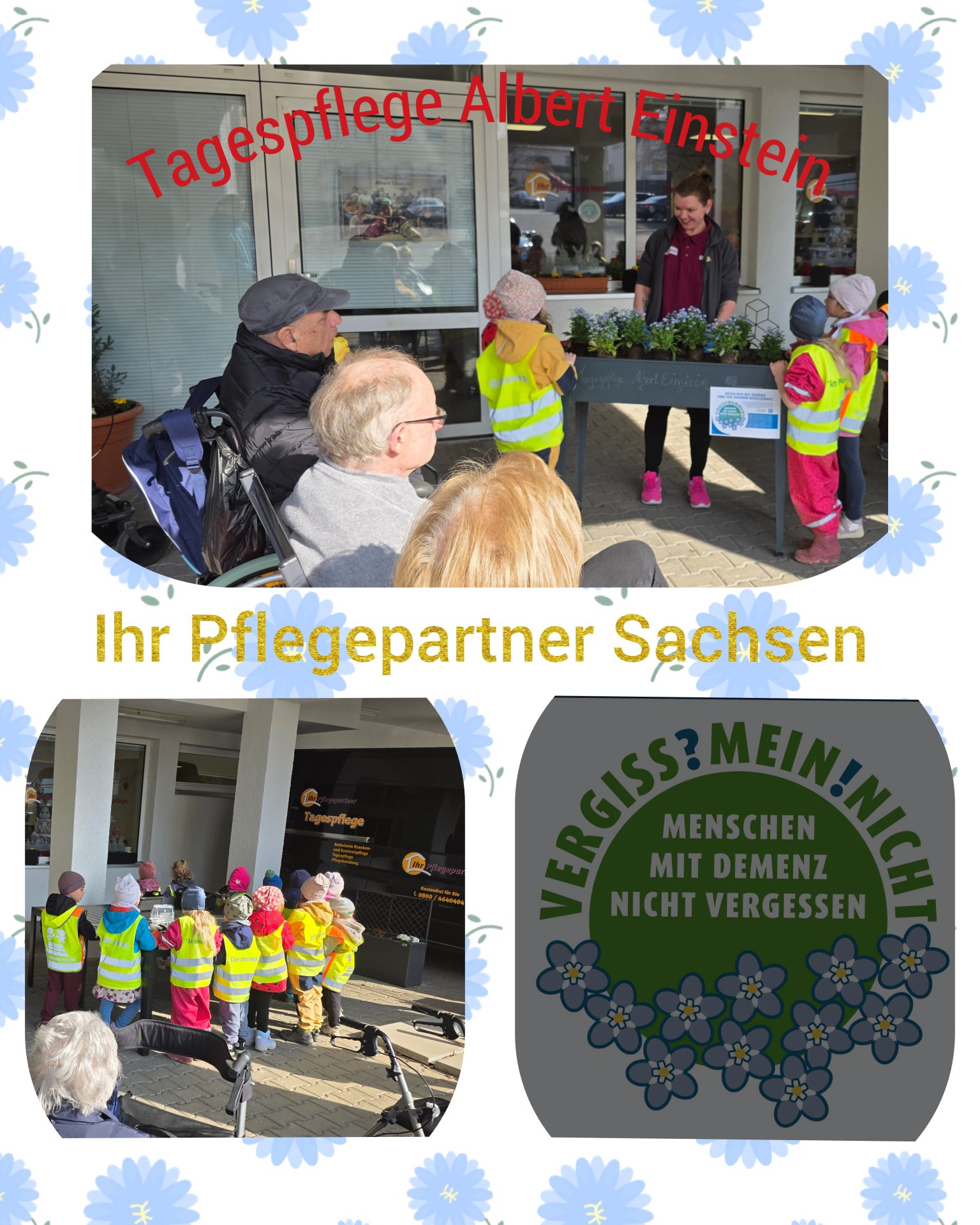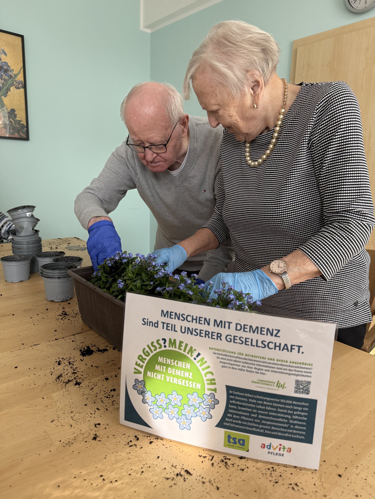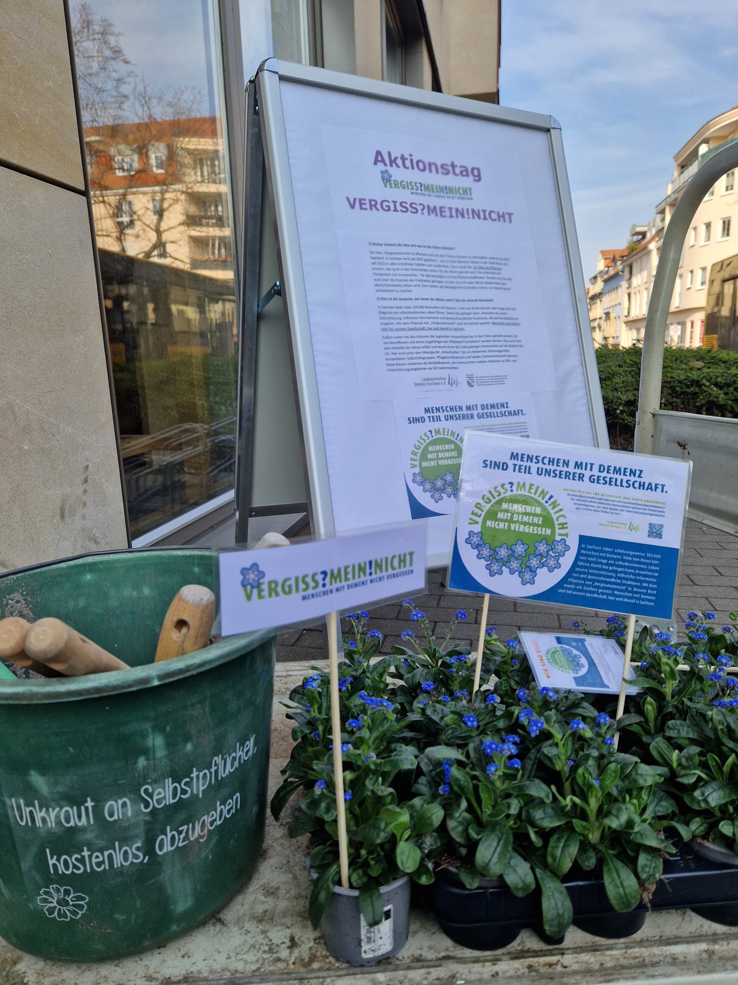 An 282 Orten in ganz Sachsen wurden am 19. März 2025 wunderschöne blaue Vergissmeinnicht als sichtbares Zeichen für mehr Aufmerksamkeit und Verständnis für Menschen mit Demenz gepflanzt.