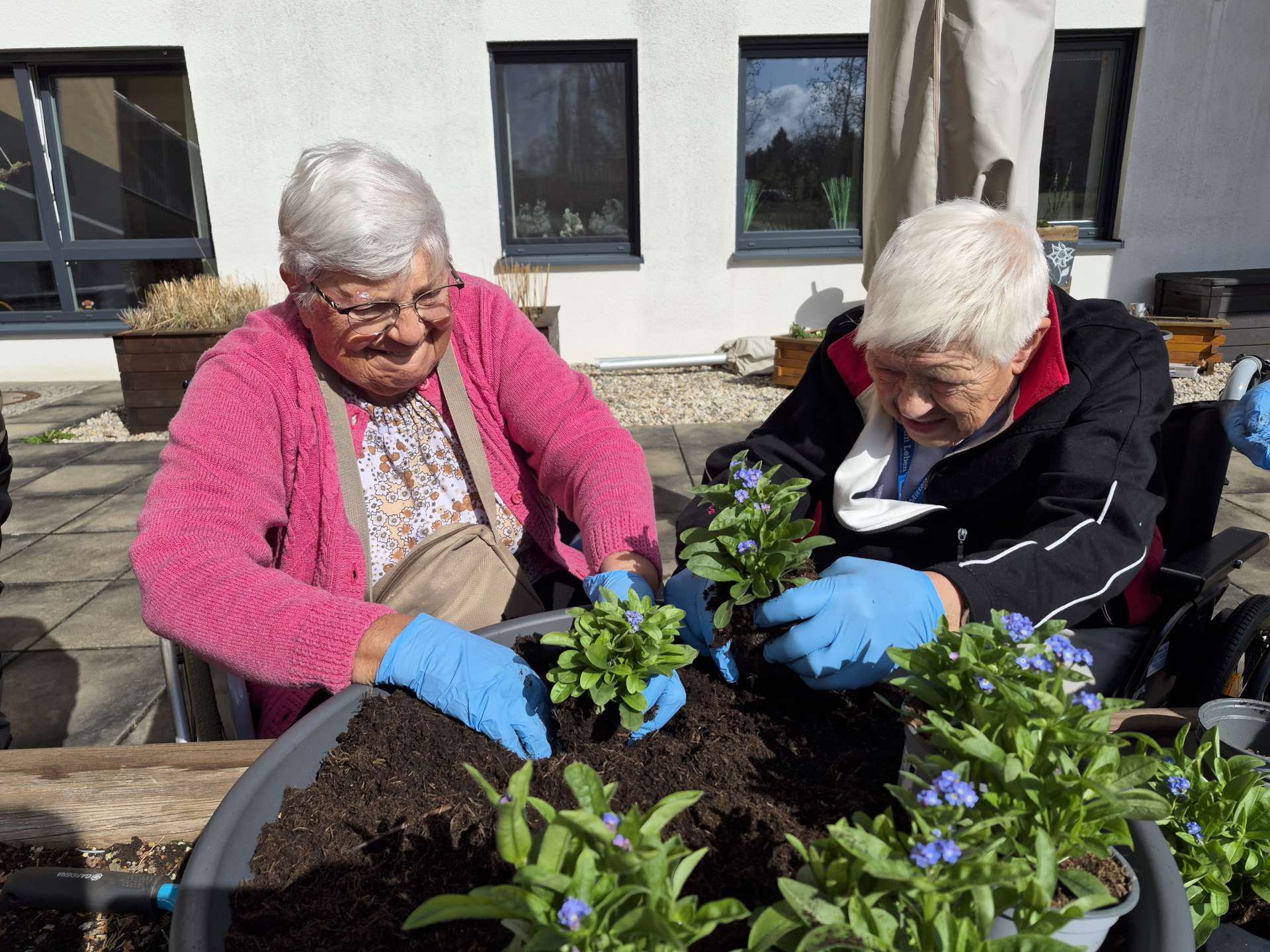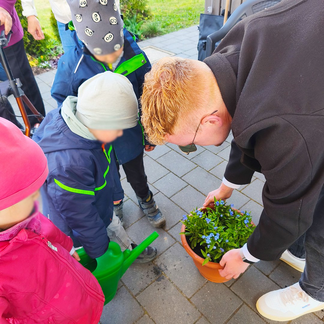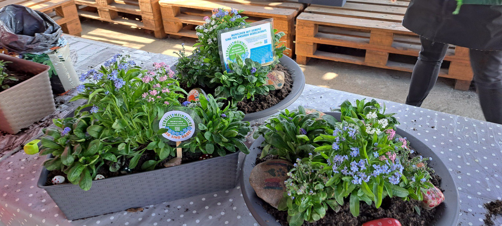 Das Schöne an dieser Aktion ist: Jeder kann sich beteiligen und der Fantasie sind keine Grenzen gesetzt! Angefangen von einer einzelnen Vergissmeinnicht-Pflanze, die am Empfangstresen oder im Wartebereich steht, über einen größeren Kübel im Eingangsbereich bis hin zu ganzen Flächen in Gärten oder im öffentlichen Raum - je nach Platz und Budget kann für Menschen mit Demenz ein Zeichen gesetzt werden. Und nicht nur für sie, sondern auch mit ihnen: Die Hände in herrlich kühler Erde und der Geruch nach Torf wecken Erinnerungen und so kann das gemeinsame Pflanzen ein ausgleichender Moment im manchmal herausfordernden Pflegealltag sein.