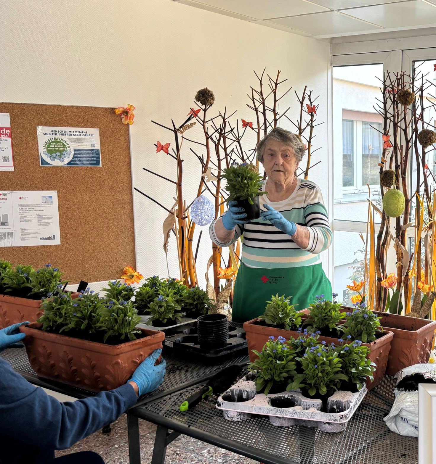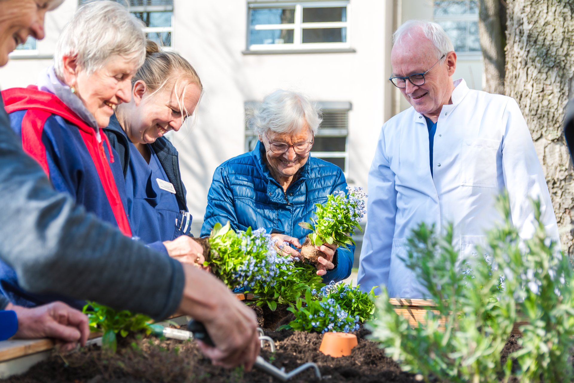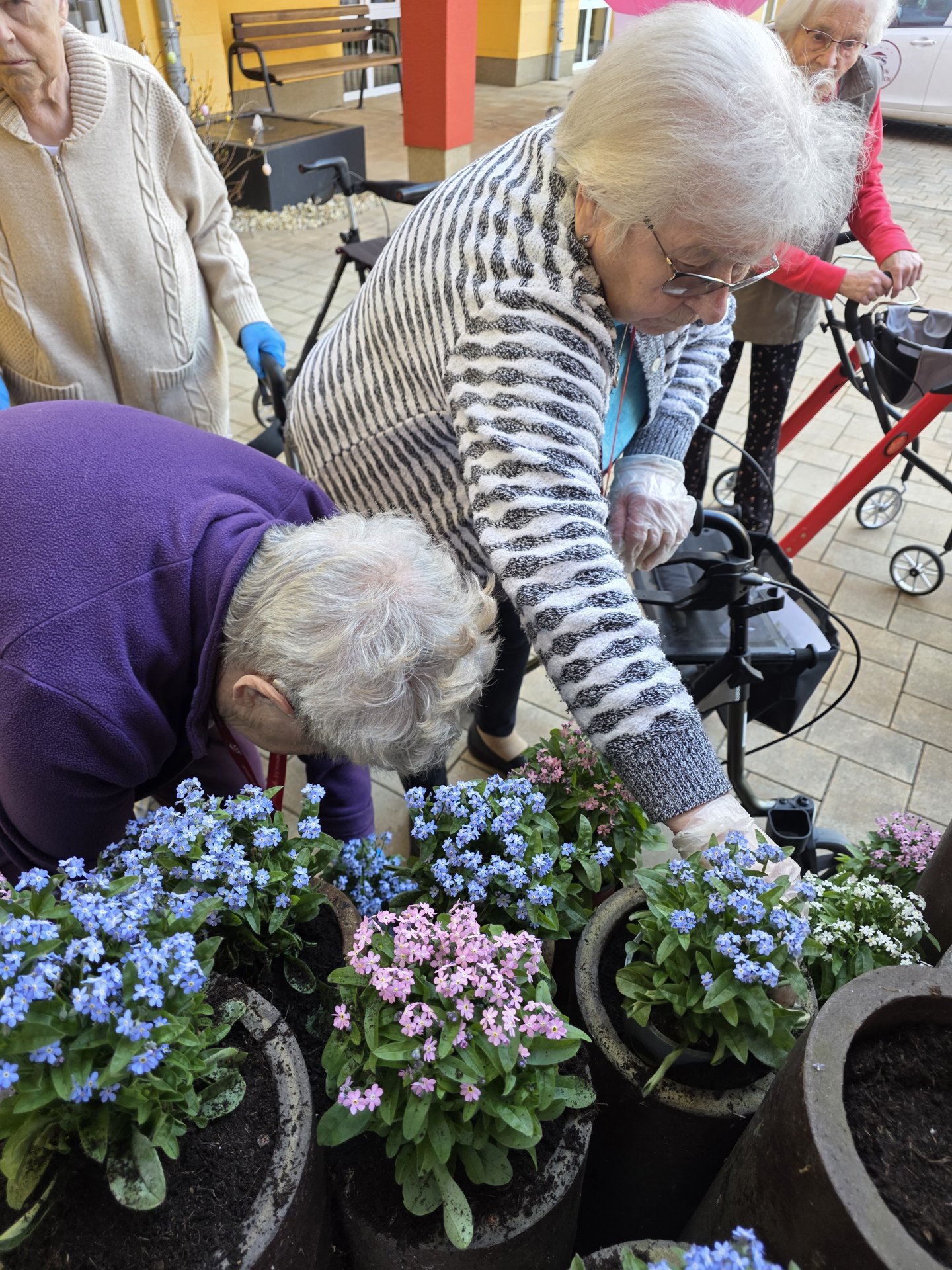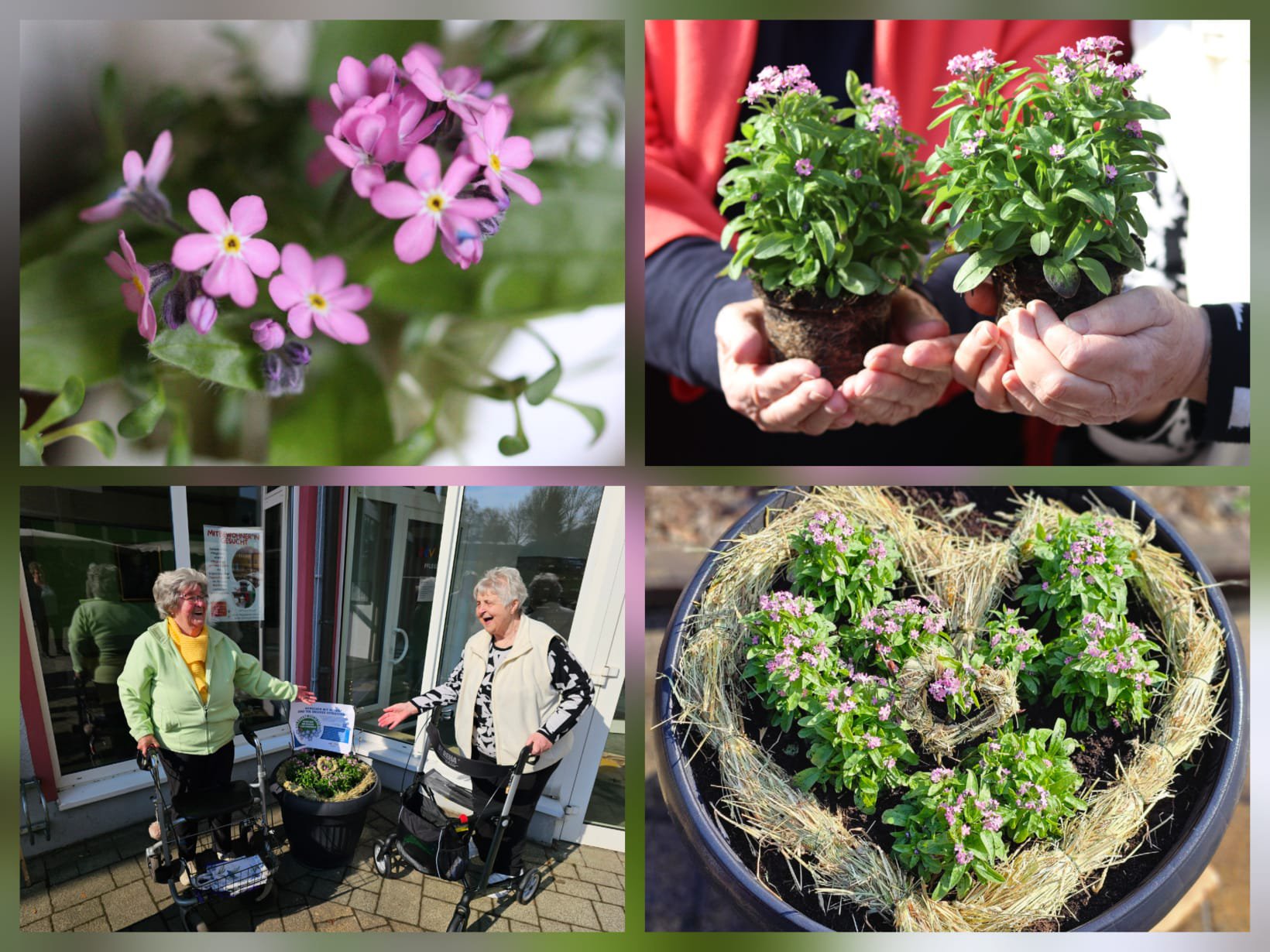 Das Schöne an dieser Aktion ist: Jeder kann sich beteiligen und der Fantasie sind keine Grenzen gesetzt! Angefangen von einer einzelnen Vergissmeinnicht-Pflanze, die am Empfangstresen oder im Wartebereich steht, über einen größeren Kübel im Eingangsbereich bis hin zu ganzen Flächen in Gärten oder im öffentlichen Raum - je nach Platz und Budget kann für Menschen mit Demenz ein Zeichen gesetzt werden. Und nicht nur für sie, sondern auch mit ihnen: Die Hände in herrlich kühler Erde und der Geruch nach Torf wecken Erinnerungen und so kann das gemeinsame Pflanzen ein ausgleichender Moment im manchmal herausfordernden Pflegealltag sein.