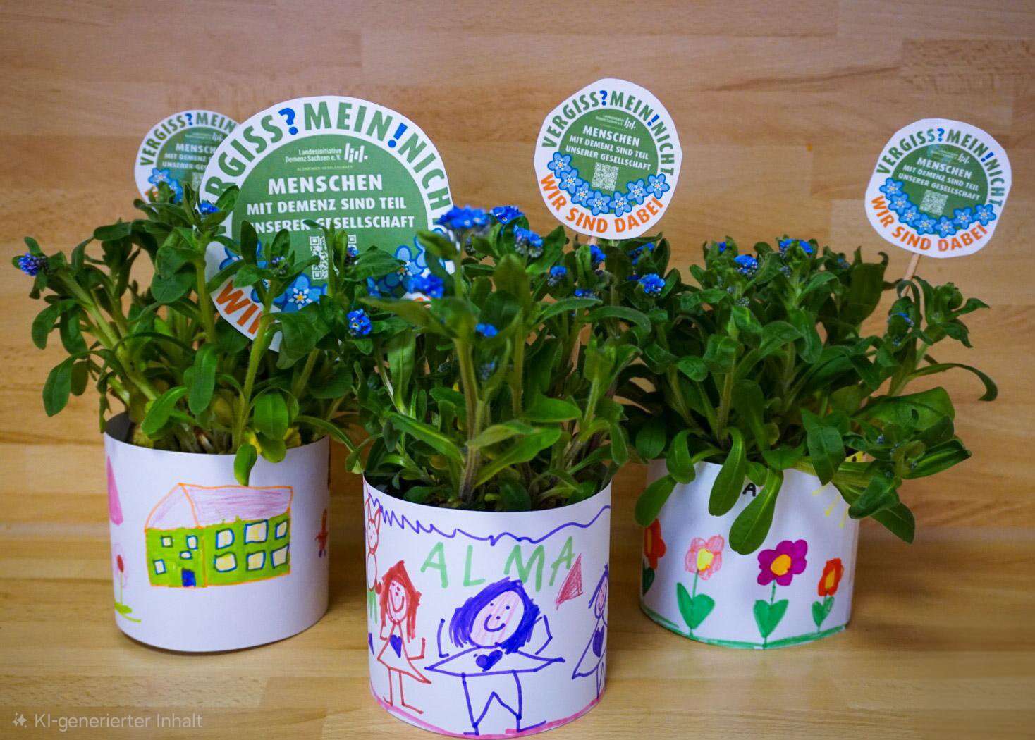 Seit 2015 pflanzen Menschen im Frühling überall in Deutschland Vergissmeinnicht und setzen damit ein Zeichen: Menschen mit Demenz sind Teil unserer Gesellschaft und dürfen nicht vergessen werden. Wir haben die Aktion 2023 nach Sachsen geholt und sie Jahr für Jahr wachsen lassen. Zudem wurde durch uns ein Aktionslogo sowie Infotafeln, Plakate und "Wir sind dabei!"-Aufkleber entwickelt, welche allen Mitmachenden zur Verfügung stehen. Zudem unterstützen wir die Teilnehmenden bei der Öffentlichkeitsarbeit und sind Ansprechpartner bei allen Fragen zum Aktionstag.