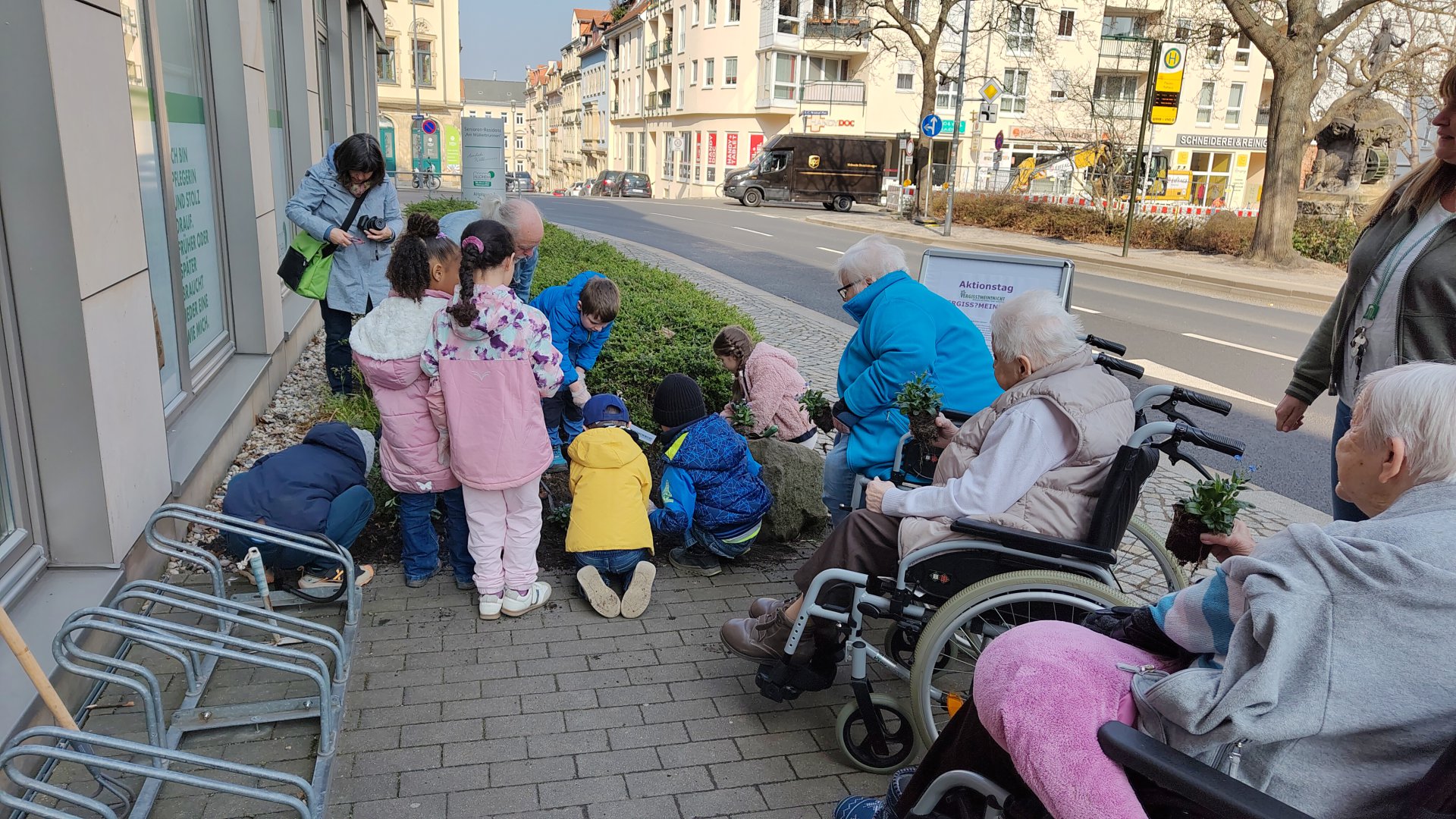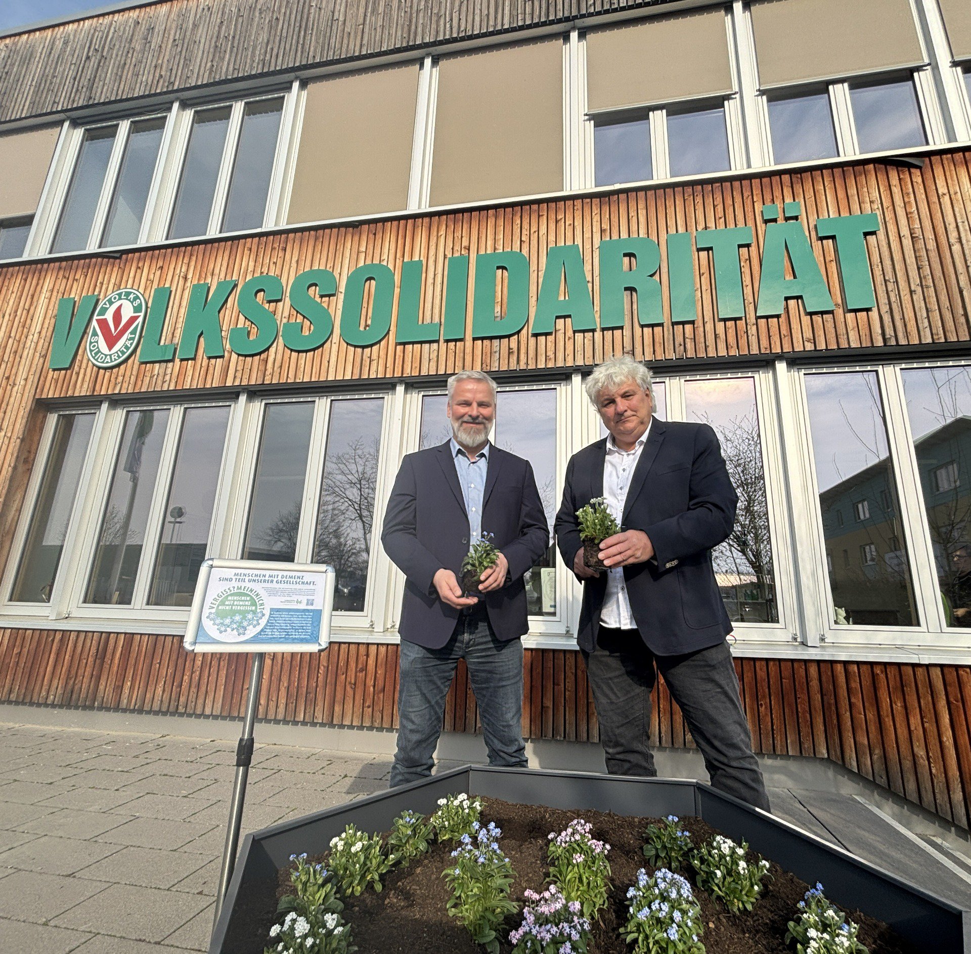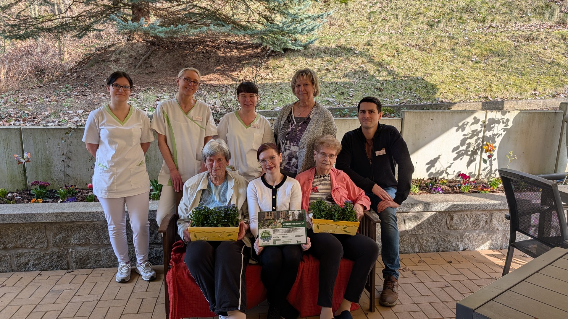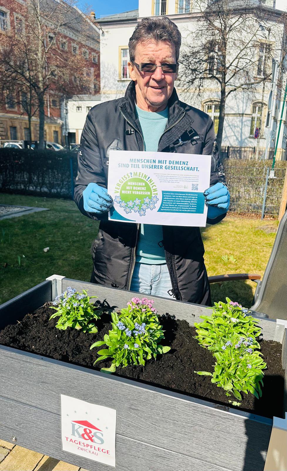 Auf der Seite des Landkreises finden sich neben einem Artikel weitere Fotos der Aktion: Pflanzaktion "Vergissmeinnicht": Ein Zeichen für Demenzerkrankte / Vogtlandkreis