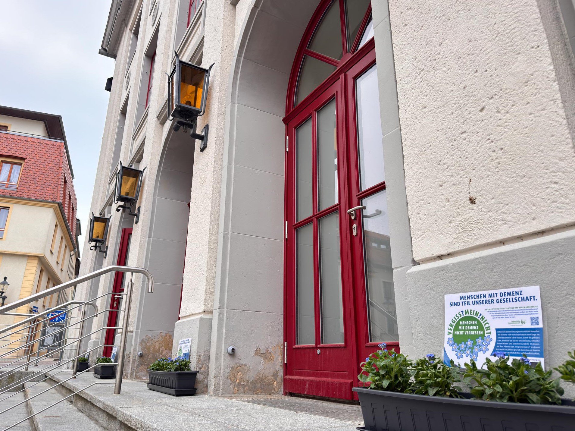 Ebenfalls im Landkreis Nordsachsen, in der Stadt Oschatz, ludt der Oberbürgermeister David Schmidt die Lokale Allianz Oschatz und Umgebung zum Kaffeetrinken ins Rathaus ein. Ihm wurde symbolisch ein Vergissmeinnicht übergeben und so die Idee ins Rathaus getragen. Wir konnten zusammen mit der Demenzkoordinatorin Grit Wegner das erste Jahr der Lokalen Allianz Revue passieren lassen und die weiteren Anliegen besprechen.